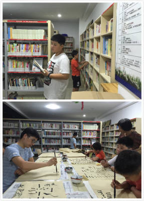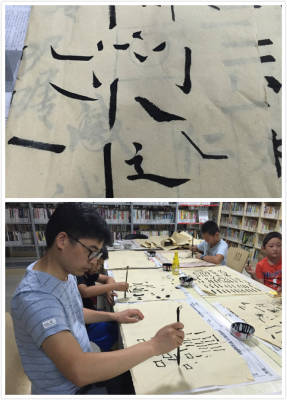 不知不觉练习书法已经一个小时过去了,休息时间到了,小朋友们活动了下酸痛的胳膊和手,纷纷冲到书架前翻看自己喜爱的书籍。阅读之乐,尽在此时。