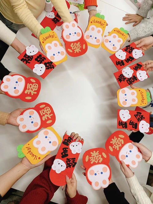 从2018到2023,专属于金图手工坊的新年活动——制作新年红包,已经到了第六年。今年的兔年红包,我稍微提高了难度,虽然仍是缝制不织布,但是针法和对细节的要求,是上了一个新台阶的。