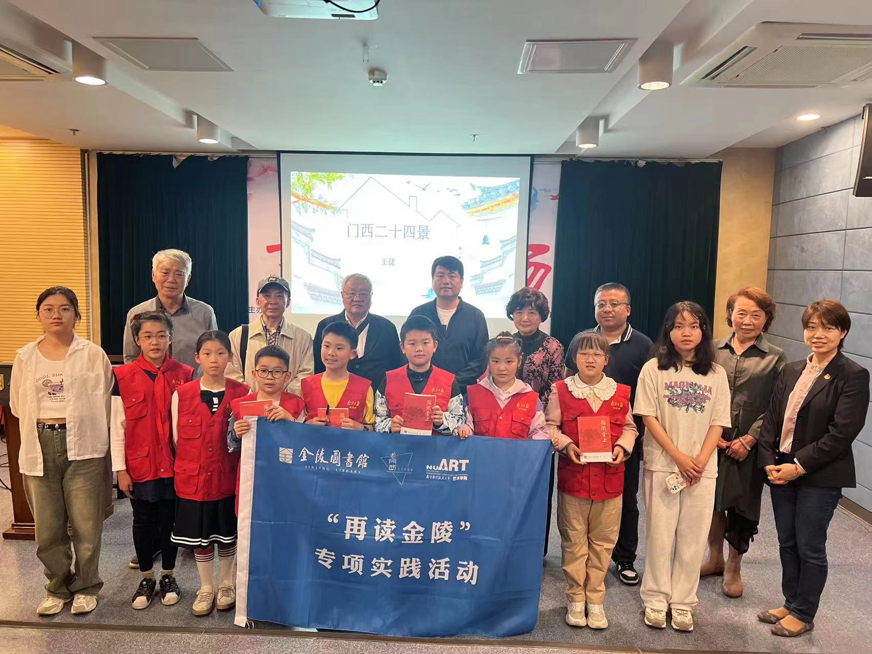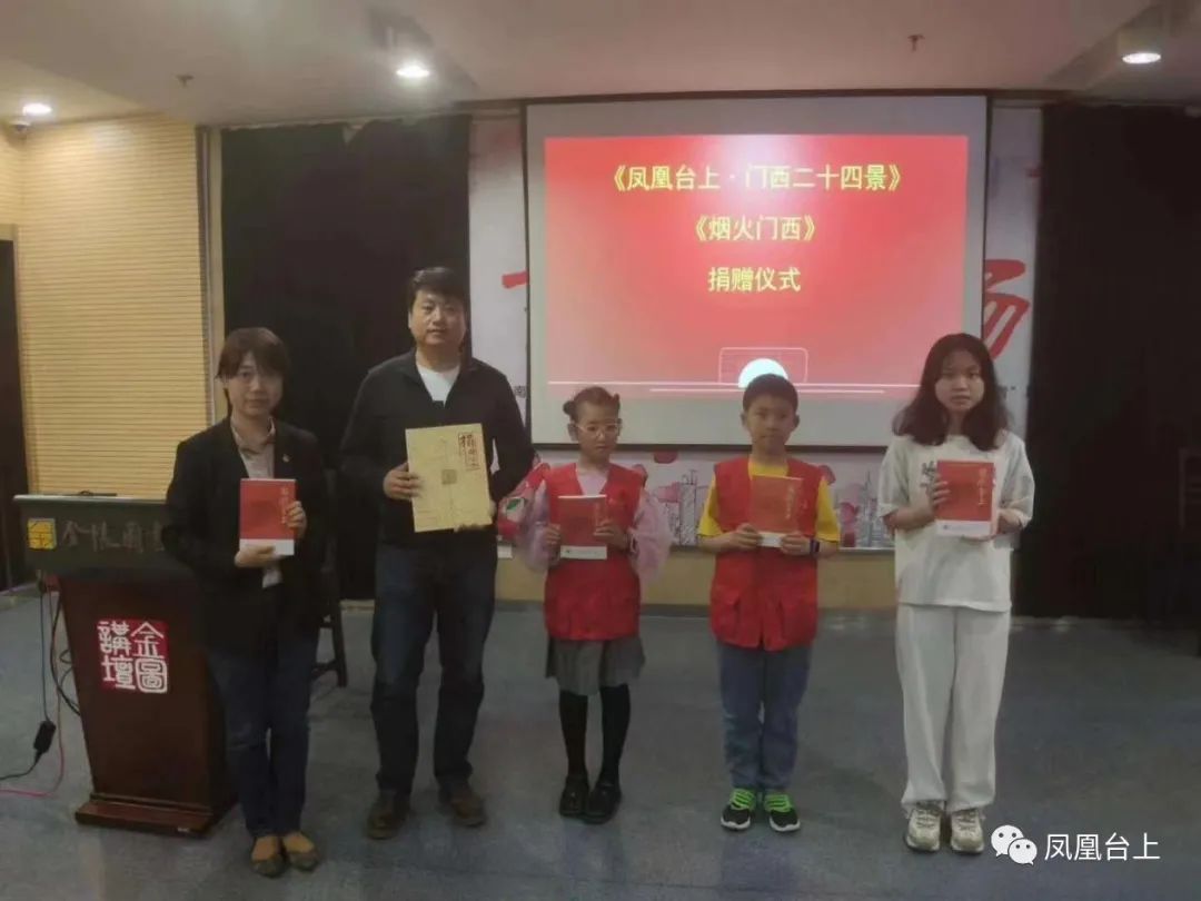 首先是《凤凰台上·门西二十四景》首发仪式,老门西文化守望者协会王鑫会长致辞,并向金陵图书馆、南航艺术学院、《南京日报》小记者新闻学院代表赠送了图书。