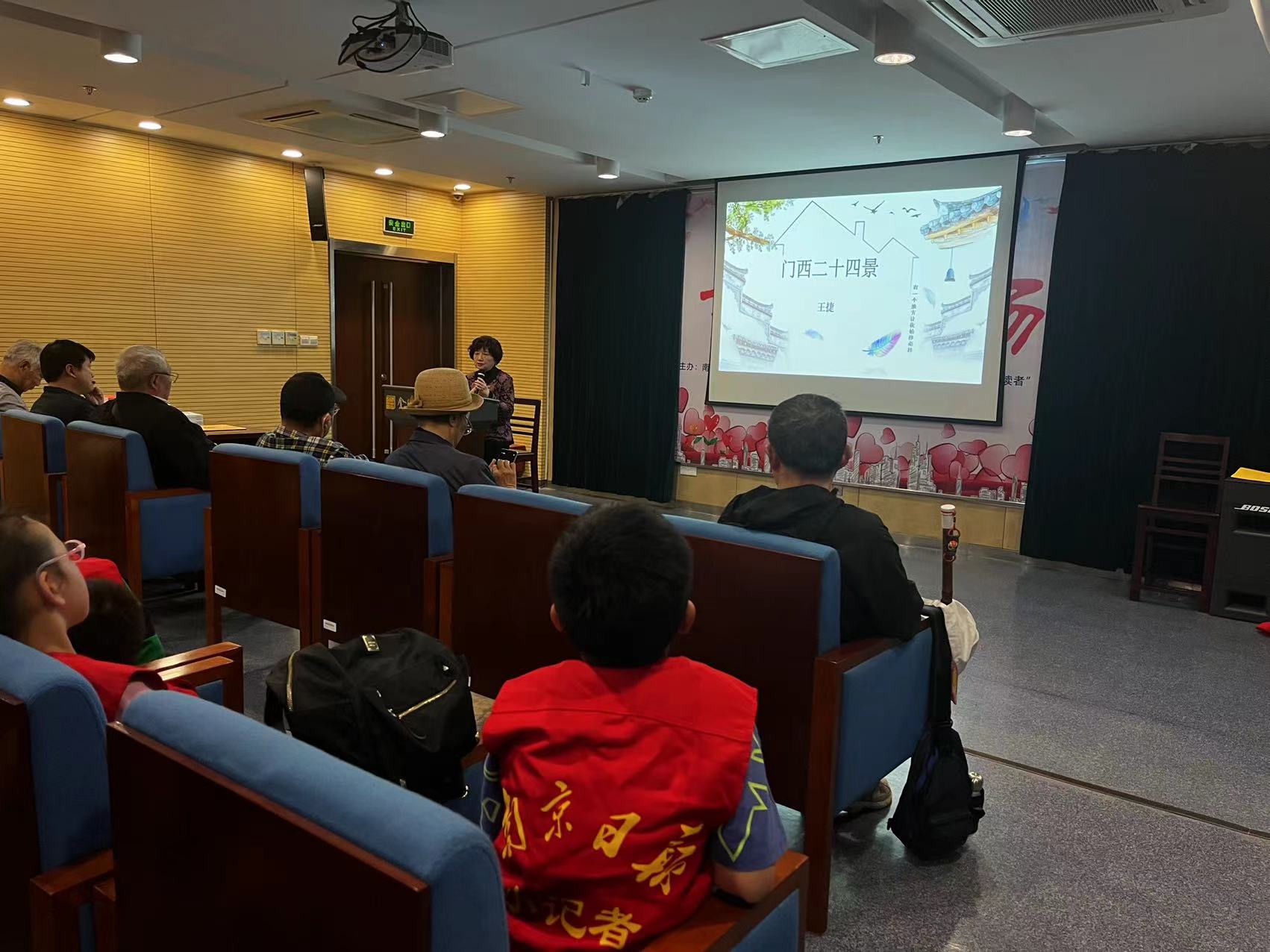 协会从去年开始发起评选门西24景,王捷老师一直进行着研究,李白的凤凰台,杜牧的杏花村,顾起元七征不起隐遁避世而建遁园,筑园奉母的胡孝子的愚园等等,一个个,如数家珍,娓娓道来,听众们也听得津津有味,频频点首,近两个小时的讲座结束了,大家仍然听得意犹未尽。