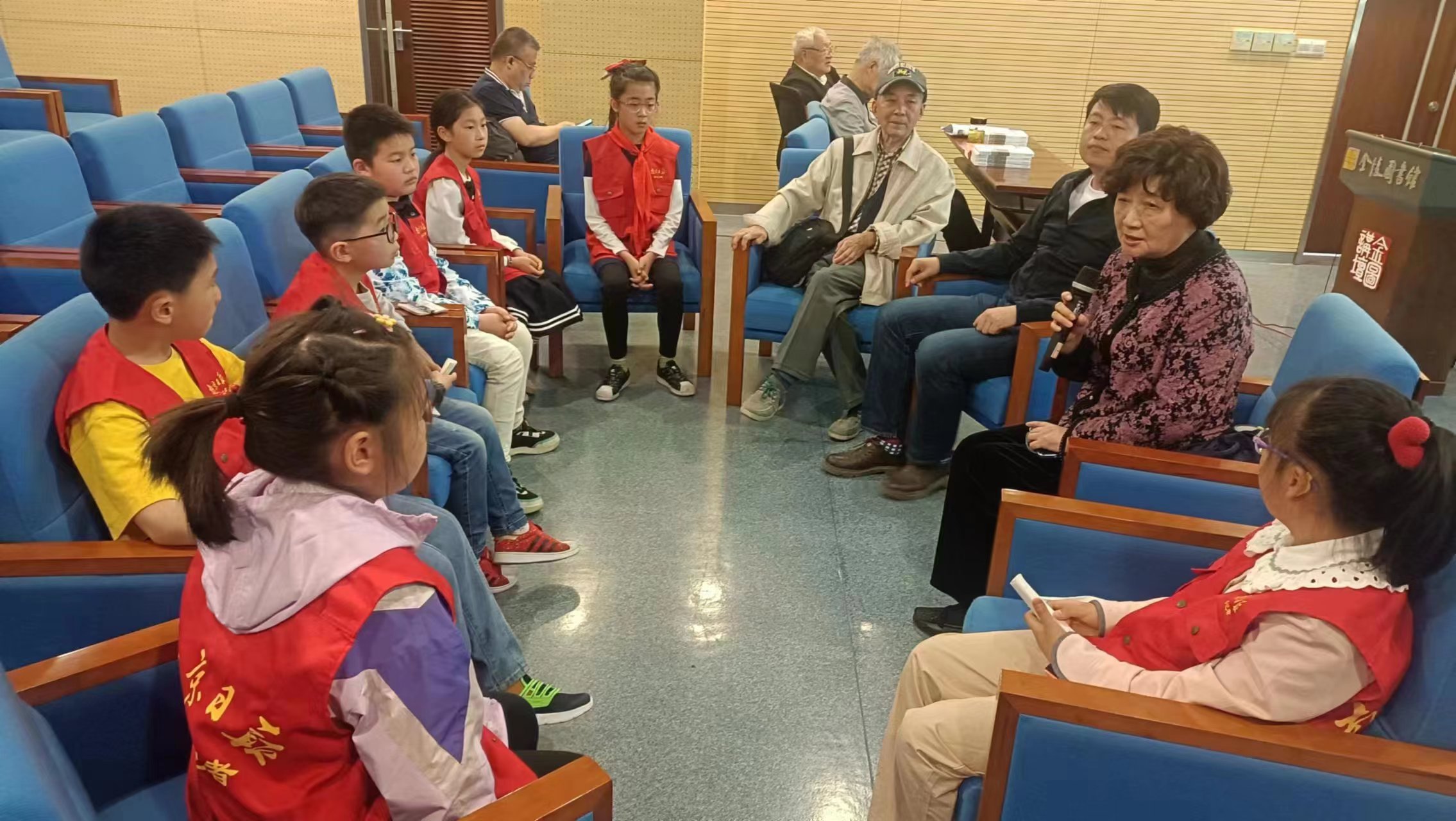 讲座中王捷老师还多次与小记者们互动,激发了同学们对门西景观的浓厚兴趣。讲座结束后小记者们还对王捷老师和王鑫会长、戴启元老师进行了采访,他们表达了对“门西24景”的喜爱,争相发问。有小记者问24景,你们更看重哪个景?王捷老师回答说我们觉得24景都是门西重要的景点,有几个很重要的遗址景点,现在还没有标识,如凤凰台,还有韩熙载故居遗址,希望能把韩熙载夜宴图展示出来,让更多的人了解门西的景观、门西文化对南京的贡献。王鑫会长说门西的同乡共井反映了南京的包容,接纳融合外来的人士、文化等等,因此南京才会是一个博爱之都、文学之都,他希望同学们不仅要着眼南京,还要开放格局,接纳世界各种东西,做一个世界人。
