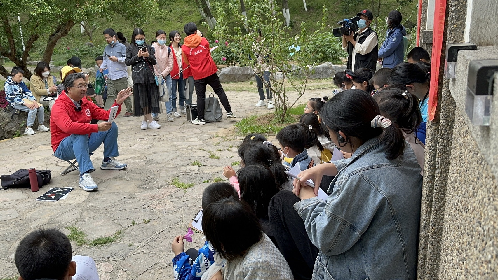 最后,在水边楼阁处,孩子们拾级而坐,仁和老师带领孩子们学习了与古字相关的字、与花相关的诗词,课堂氛围和乐融融,孩子们收获满满。
