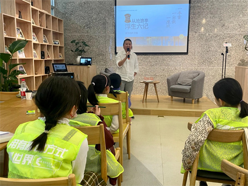 在活动中,萧老师从大家喜爱的哈利波特开始谈起,引导孩子们主动了解什么是IP。随后她在现场讲述了园林版昆曲《浮生六记》幕后的故事,并通过“warm up”戏剧游戏,用无实物表演让孩子们充分地感受到了不同于舞台表演的沉浸式戏曲的独特魅力。