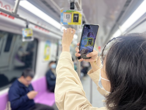 在飞驰的宁句城际列车中打造一辆“书香专列”,在整列车24块看板和164个拉手上设有本次活动的主题海报,海报内容包括活动主题及云上图书馆阅读库的二维码,乘客在搭乘地铁时可以扫描海报上的二维码,随时随地实现畅享阅读。搭建起场景化阅读平台,优化沉浸式阅读新体验,让地铁空间也可以成为流动的图书馆,真正将文化书香散播到城市的每一个角落,将出行过程中的碎片化时间有效利用,丰富了图书馆的内涵,增加了地铁的文化气息,建设起流动的文化会客厅,让地铁这个空间成为此次活动的主阵地,真正实现“物尽其用”。正所谓“无边光景一时新,饱读诗书四季春”,阅读不仅仅可以是足不出户的闭门思之,青灯古佛下的皓首穷经,更可以一路芬芳、一路徜徉、寓情山水。
