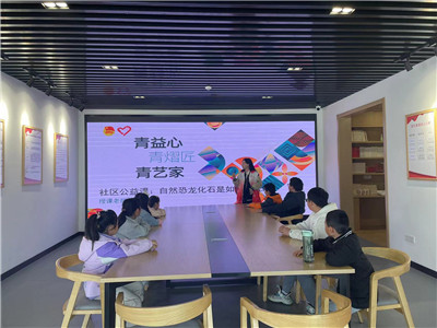 4月1日上午,金图科普志愿分享团成员王丹走进浦口区永宁社区,给小朋友们带来主题为“自然恐龙化石的奥秘”的公益课程。课程依托金陵图书馆【微知堂】阅读品牌,馆员结合资源自主开发科普内容, 活动当天,老师带小朋友们认识了各种各样的恐龙,具体讲述了伟大的科学家们发现化石、寻找化石、搜集化石的发展过程,用讲述科学实验故事让小朋友们走进科学新天地,用播放科普视频增强他们的科学体验,用互动性的提问方式培养思维能力,激发到场小朋友对科学的兴趣。