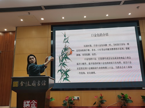 朗诵结束后,手工课堂正式开始。口金包作为非遗文化之一,最为人所知的是在民国时期,与旗袍等服饰一同穿戴使用,时至今日传承已有百年。口金包打开时像开口的蟾蜍,寓意着富贵、长生、辟邪等美好的祝愿。课程时长,近两个小时,紧凑而热烈。课程开始,授课老师先展示了口金包的种类与构成,再用准备好的材料包进行讲解,之后便手把手教授如何穿针引线,如何缝制成包,在读者们缝制过程中,下场一对一指导教学。课堂上,有低视力的孩子、智力障碍的孩子,也有普通孩子,他们怀着对父母感恩的心,专注于完成这一美丽的手工作品,并对手工中遇到的问题进行了友好的探讨。现场的妈妈们指导孩子如何使用针线,孩子和爸爸们现场学习缝制口金包,动作生涩却满怀热情,亲子氛围十分浓厚。经过一个多小时的制作,小巧精美的口金包制作完成,孩子和家长也与手工作品合影留念,并希望在活动结束后将作品作为礼物送给自己的妈妈。