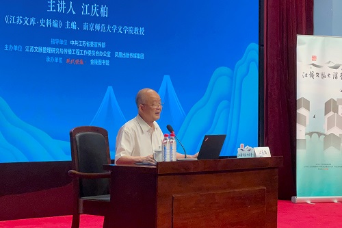 6月12日下午,由中共江苏省委宣传部指导,江苏文脉整理研究与传播工程工作委员会办公室、凤凰出版传媒集团主办,现代快报社、金陵图书馆承办的江苏文脉大讲堂第十五讲于金陵图书馆一楼报告厅正式开讲。《江苏文库·史料编》主编、南京师范大学文学院教授江庆柏应邀,以“近现代江苏藏书与文化传承”为题,介绍江苏近现代史上星罗棋布的藏书楼与图书馆。本次讲座由金陵图书馆馆长焦翔主持,现场累计150余名读者参与,线上现代快报+ZAKER南京、江苏文脉微信公众号等平台全程直播,60多万网友在线观看。
