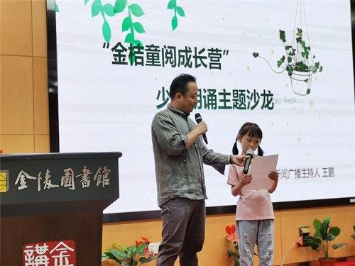 如果说朗读是一种有声的阅读,那么朗诵则可以称之为特殊的朗读。它不仅仅是“发声的阅读”,而是把静态的文字作品有声化的一种语言艺术创作。6月10日上午,金陵图书馆“金桔童阅成长营”特邀南京新闻综合广播FM106.9《新闻评论区》主持人、节目部主管王鹏,为热爱阅读与朗诵的孩子们带来了一场少儿朗诵主题沙龙,与此同时,小读者们在参与展示和互动的过程中,还获得了老师的专业点评。指导老师帮助大家提纲挈领,找到进步的方向。