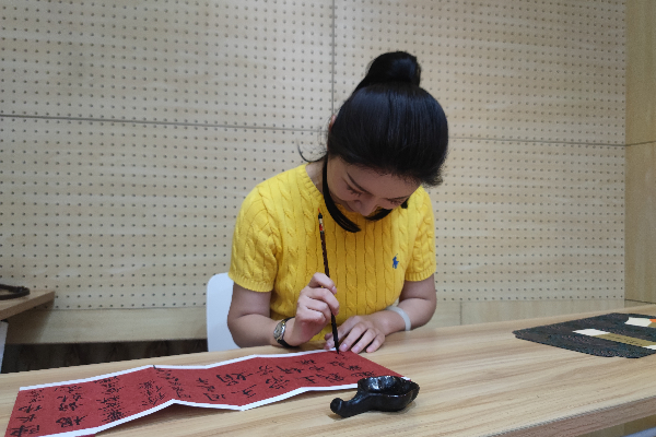 活动开篇采用了别具一格的毛笔字签到方式,激起了大家内心对传统文化满满的情感。每个人都很激动,回忆起自己上一次握住毛笔的时刻,在签到本上写下自己的名字,并领取一张写了励志话语的书签作为纪念。