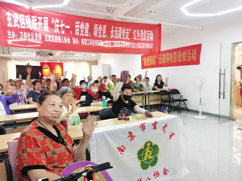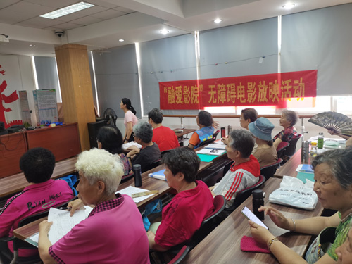 2023年6月21日和6月27日的两个下午,金陵图书馆联合玄武区残联在富贵山社区以及卫岗社区开展了“融爱影院”无障碍电影放映活动。两个社区共计50余名残障读者和老年读者聚在一起,“观看”了无障碍电影。富贵山社区播放的是《战狼》,影片打破常人眼中军人的常规印象,从内心精神上,去理解和感受军人这一职业的不凡意义,去感受“犯我中华者,虽远必诛”这几个铿锵有力极具血性的爱国信仰的大字的无穷魅力。卫岗社区播放的是《建党伟业》,影片讲述了从1911年辛亥革命爆发开始一直至1921年中国共产党第一次全国代表大会召开为止共10年间中国所发生的一系列重大历史事件,中国共产党的诞生应允了历史的要求,应允了民族的要求。中国共产党的诞生,给中国带来了希望,给人民带来了光明,为中国革命开辟了一条前所未有的道路。
