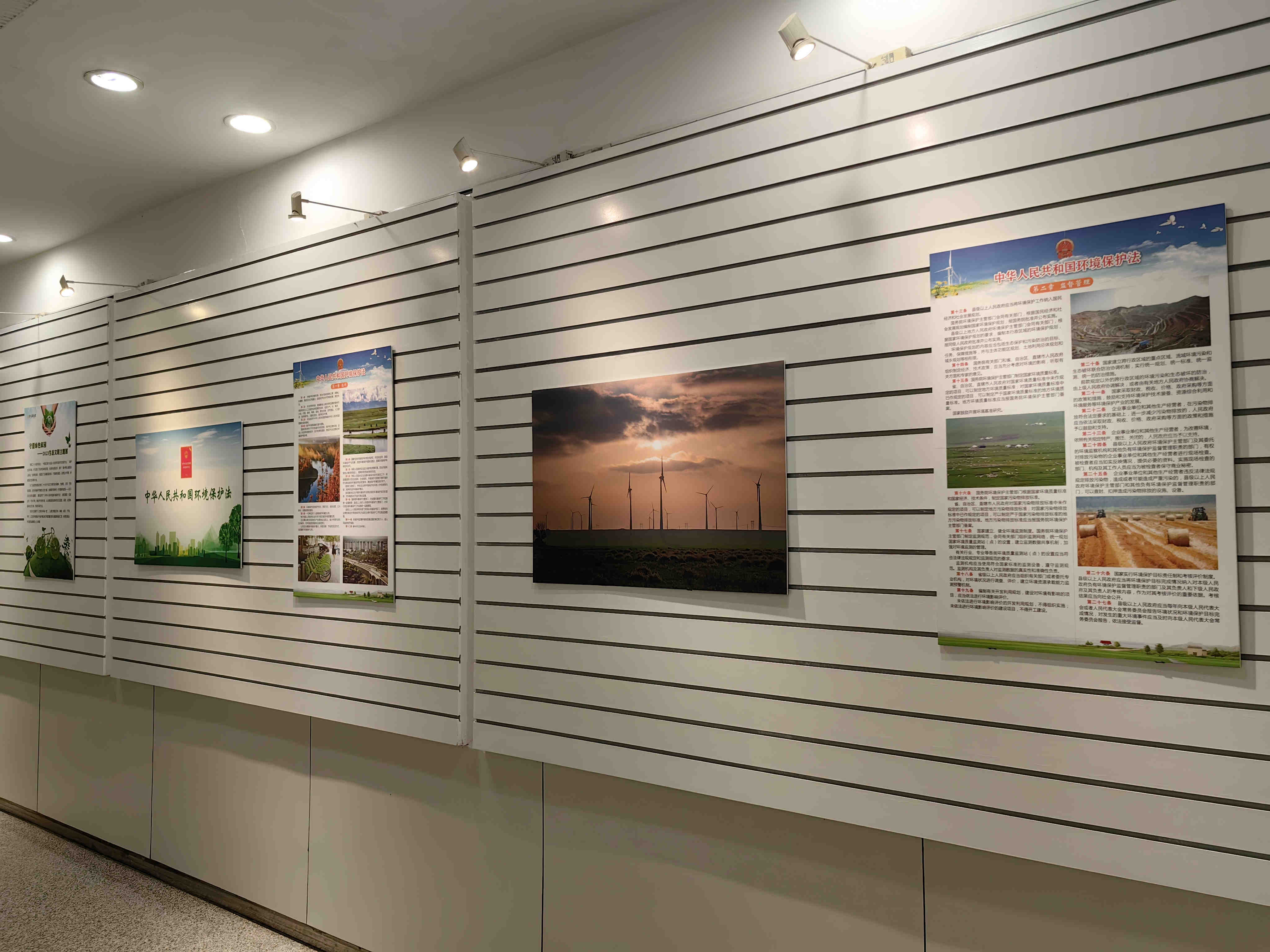 展览荟萃了《中华人民共和国环境保护法》、清洁能源、低碳出行、节水节电、勤俭节约等内容,从法律层面到具体的生活层面,系统、全面地倡导生态文明,推动环保生活。