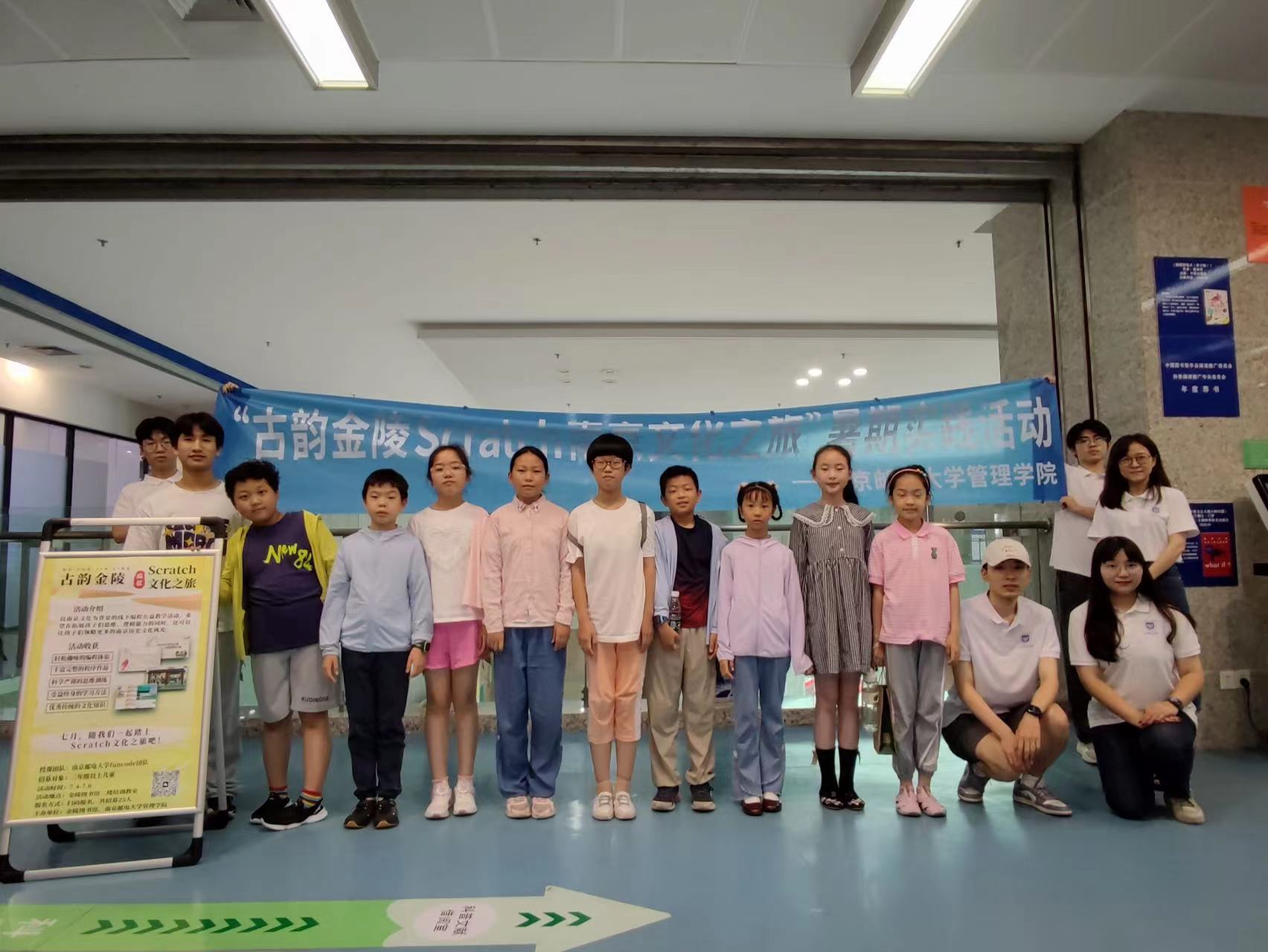 7月4日-7月6日“古韵金陵——Scratch南京文化编程夏令营”正式开启,南京邮电大学funcode团队为金图小读者们带来了一场精彩的公益编程夏令营。金陵图书馆负责了活动策划组织,提供了场地、设备保障,开展宣传、组织读者报名。南邮funcode团队是由南京邮电大学管理学院刘婧老师领队,两名研究生与五名本科生组成的编程授课团队。团队成员在课程设置、海报设计、授课协助、现场维护、宣传推送等一系列过程中配合默契,共同助推了本次活动的成功!