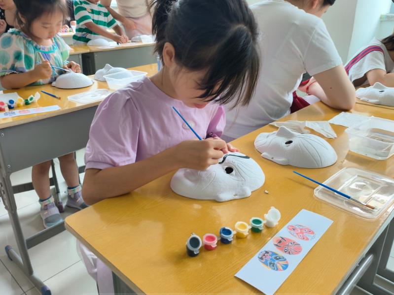 京剧脸谱,是一种具有中华传统文化特色的特殊化妆方法,也是一门广受戏迷票友追捧的艺术。随着中华优秀文化亮相国际的机会越来越多,中华戏曲艺术在国外也有了越来越多的拥趸,并且被大家公认为是中国传统文化的标识之一。通过本次课程,孩子们体验了一回真实的脸谱绘制技艺,通过绘制脸谱,大家也从一个侧面对国粹京剧有了一定的了解。值得一提的是,在绘制脸谱时,孩子们虽然在细节把控上还不是很到位,但每位同学都很投入,并且在下笔之余,融入了很多想法和思考,相信这种做中学的方式,对于今后同学们的艺术认知和鉴赏水平的提高,是大有裨益的。