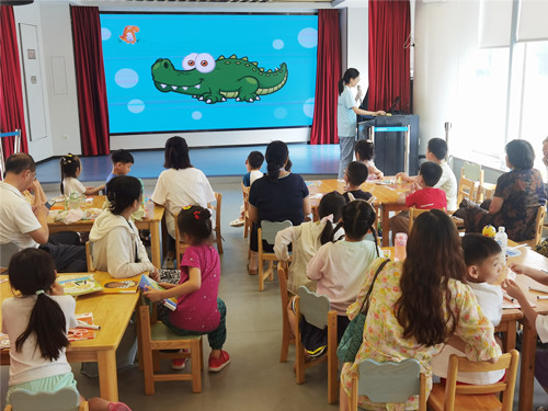 老师首先向孩子们展示了鳄鱼的卡通形象,由此引入绘本故事《鳄鱼怕怕 牙医怕怕》。故事里的鳄鱼和牙医都是站在自己的角度,看到对方会给自己带来的恐惧,鳄鱼害怕牙医给自己拔牙很痛,牙医也害怕鳄鱼咬伤自己会很痛。这个故事提醒大家不要过度沉浸在自己的角度看问题,要学习小鳄鱼面对牙医的勇气。最重要的是,小朋友们要养成自觉刷牙的好习惯,这样才会有效避免长蛀牙。接着,老师带小朋友们熟悉小鳄鱼的主要身体构造,根据步骤制作鳄鱼拼贴画。