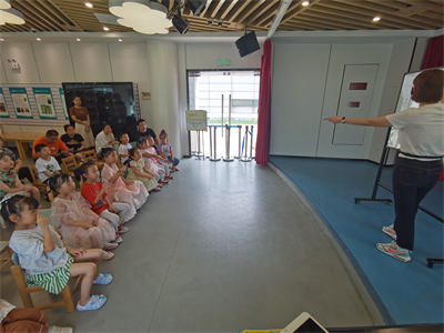 8月6日上午,第九届“七彩夏日”少儿暑期夏令营之“紫藤萝大舞台”活动,在少儿绘本区小舞台举行。今天的活动主题是“调皮的节奏”。