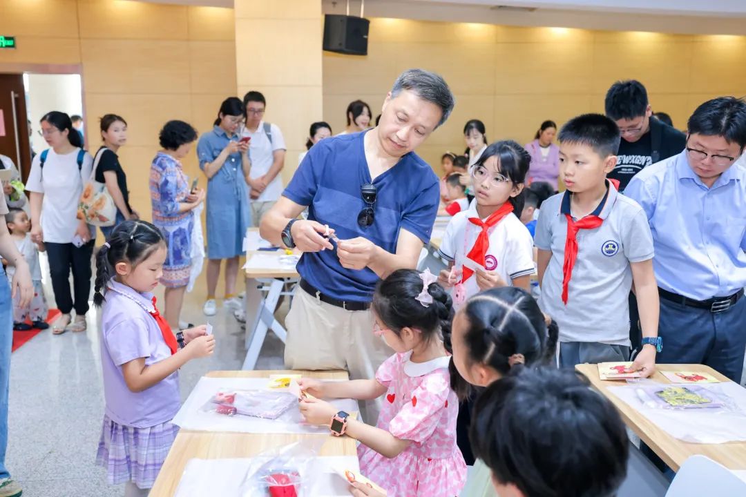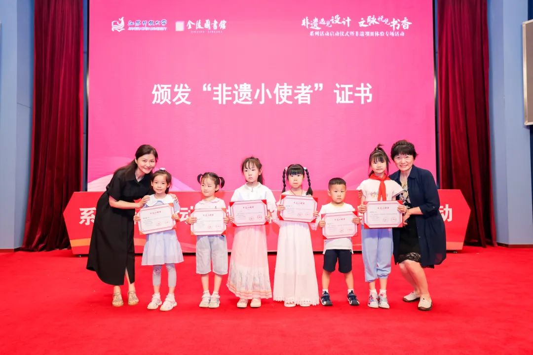 启动仪式上,江苏开放大学党委常委、副校长罗逾兰,金陵图书馆馆长焦翔,江苏省文化产业协会理事长马宁,金陵图书馆副馆长杨峥等相关领导,南京非遗传承人代表、江苏开放大学设计学院师生以及亲子家庭共同参加了活动,其中最小的参与者只有4岁。