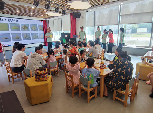 随后,在各位老师们的带领下,小朋友们参与手工互动环节制作了和平鸽,为世界和平送上美好的祝愿,并上台进行展示。
