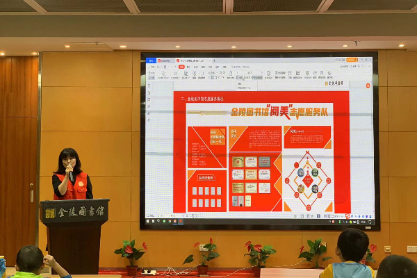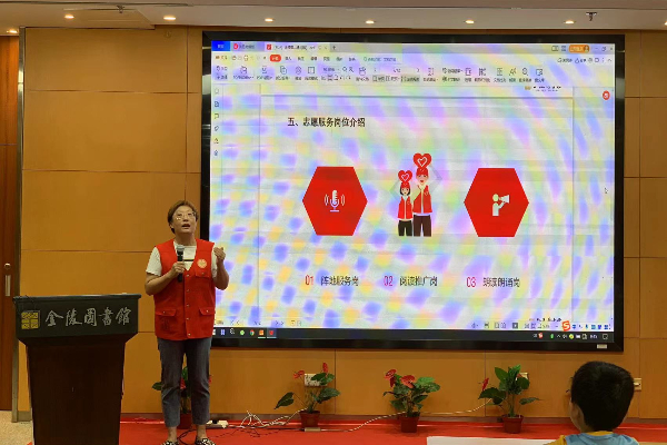 2023年8月15日上午,金陵图书馆联合南京地铁运营有限责任公司、新华报业传媒集团江南时报、南京文学之都促进会、南京市档案馆等联合举办的“寻找•探索•体验——2023文都青少年暑期研学夏令营”在金图举办专场活动。活动伊始,金陵图书馆志愿讲解员向小读者们介绍了图书馆志愿服务工作,他们绘声绘色地讲解了金图志愿服务概况、金陵图书馆“阅美”志愿服务品牌项目、金图志愿者招募条件等七项内容,让孩子们深入了解了志愿精神,并号召大家一同加入进来,爱心助力美好生活。