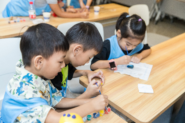 最后,老师给同学们分发了雨花石,通过对石头形状的感悟,结合今天讲解和体验到的内容,制作出独一无二的手绘作品。