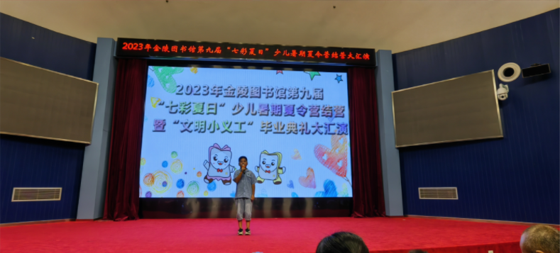 8月20日上午“七彩夏日”少儿暑期夏令营结营暨“文明小义工”毕业典礼大汇演在金图报告厅上演,小义工和家长们齐聚一堂,展现了自己的才艺,领取了志愿服务证书,收获满满。