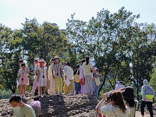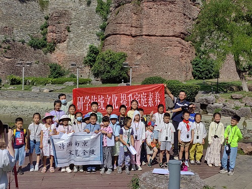 即使天气炎热,孩子们依然兴致勃勃,游览之余,大家沿着台阶席地而坐,认真聆听仁和老师讲述石头城的故事,在东吴到六朝时期,石头城也是争夺南京的战略要地,曾经发生了数次著名的战争。最后,大家一起进行了识字与诗词赏析,在实践中身临其境地感受文学的魅力。