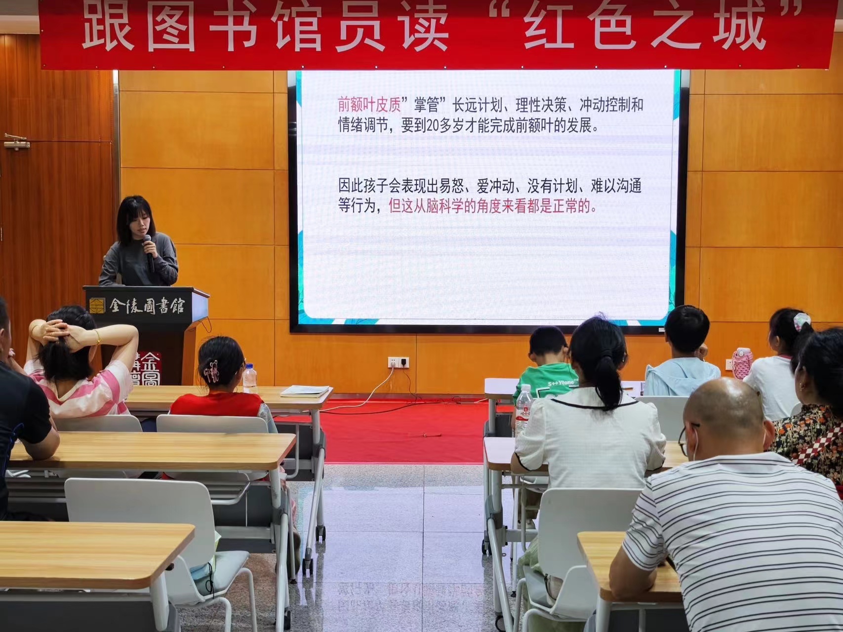 随后,初涵老师围绕如何“助力少儿成长”开始讲述。她认为:心理研究表明,从小情绪得到关注,学会和情绪和平相处的孩子,长大后更自信,对待他人和世界的态度也更积极;而情绪得不到理解和正确疏导的孩子,更容易出现自我价值感低、压抑、脆弱的性格特质。因此,在做好少儿的红色教育、阅读成长的同时,对孩子的心理教育、情绪疏导也非常重要。