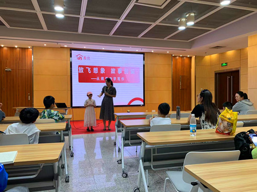5月25日下午一点,金陵图书馆“童·阅底色”——少儿阅读素养养成记之写作记第三课在我馆一楼多功能厅准时开课,本期课程主题是放飞想象、故事创编。