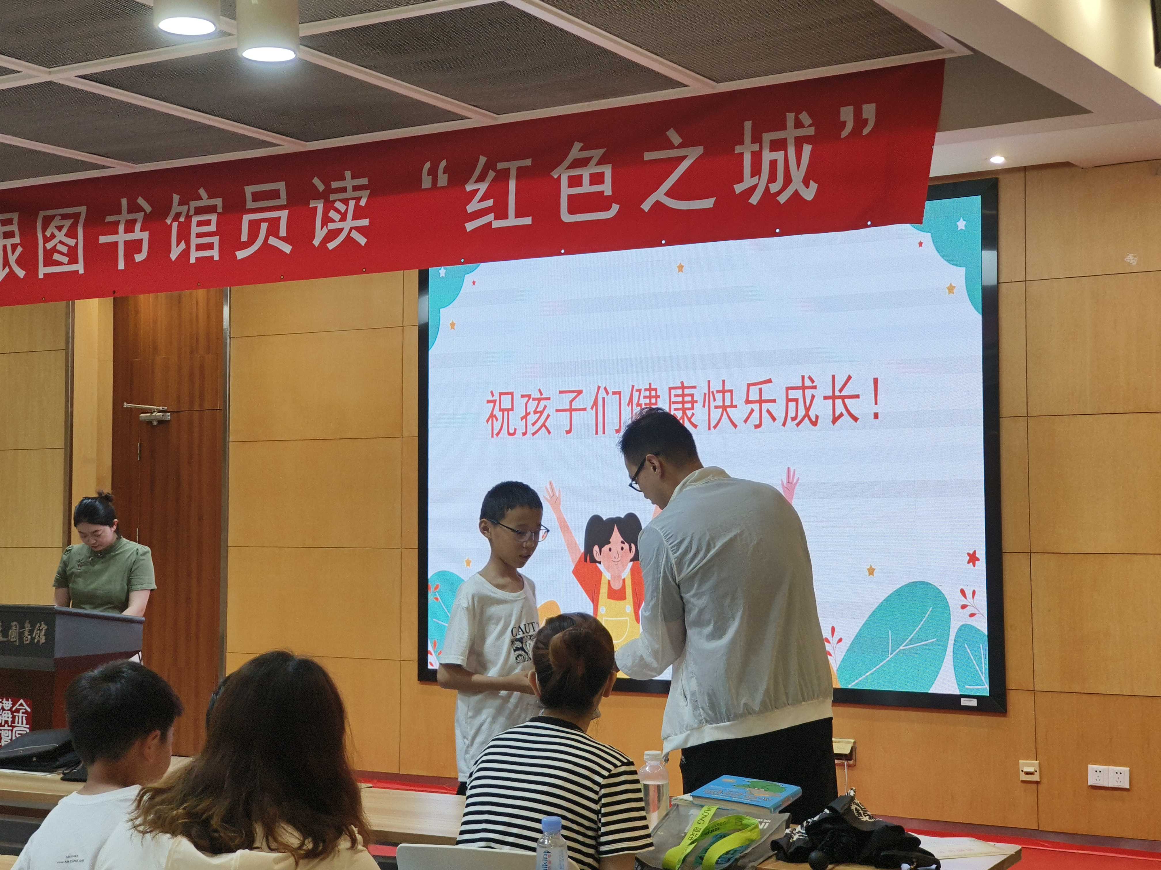 本次活动由“阅美”志愿者、南京河西外国语学校谢易璇老师主讲。首先,谢易璇老师讲述了南京的红色文化,和平安定的生活来之不易,我们应该倍加珍惜。她鼓励在场的家长和孩子们通过家庭阅读,为构建和谐社会贡献力量。