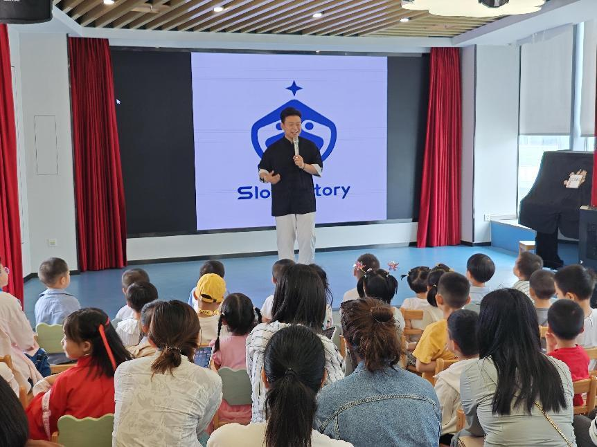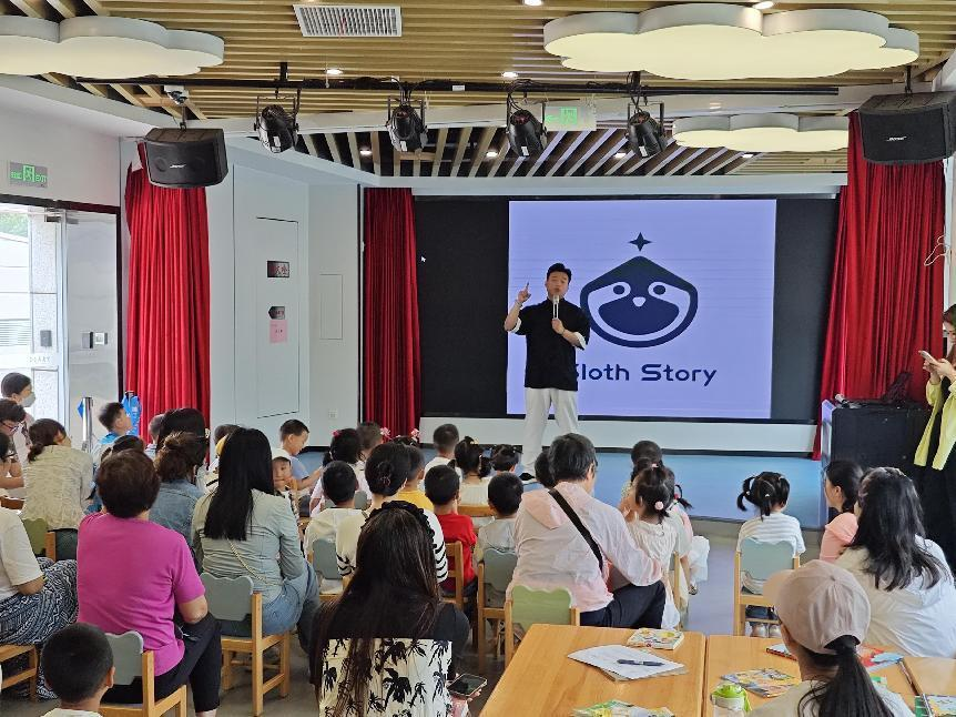 作为这场活动的主讲者,说书人蛋黄哥哥以其独特的脱口秀形式,用娓娓道来的讲述,带领孩子们走进了精彩的故事世界。他用对于孩子们来说通俗易懂的表达方式,让故事生动地呈现在孩子们面前。蛋黄哥哥的表演结合了口技、肢体动作、表情神态等多元化的表现形式,充满了趣味和互动性,让孩子们在轻松愉快的氛围中,沉浸式地聆听故事。