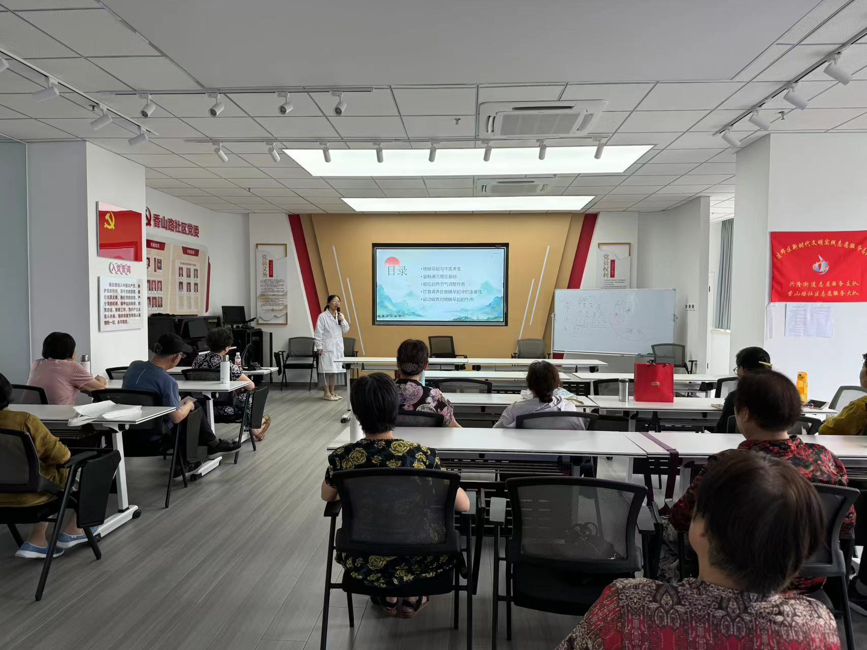 6月24日,“金图讲坛”在香山路社区举办了一场主题为“晚睡早起宣泄通畅”的康养文化讲座。此次讲座旨在传播健康养生知识,提高市民的健康意识,帮助大家养成良好的生活习惯。