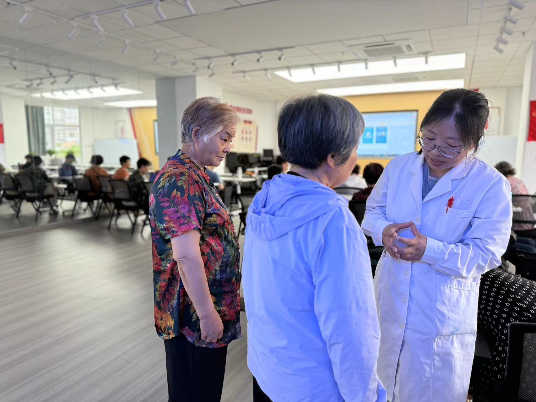 为了让居民朋友更好地掌握穴位按摩方法,王医生为大家现场示范并讲解了人体穴位的位置和按摩技巧,并邀请居民上台尝试。通过实际操作,居民们亲身体验了穴位按摩的神奇效果,大家纷纷表示要将这一方法运用到日常生活中去。