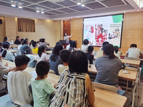 讲座伊始,谈凤霞教授向大家介绍了世界儿童图书日,并展示了大学生们创作的宣传海报,激发了现场观众对阅读的热情和兴趣。随后,她以《雨之国、沙之国》和祁智的《方一禾,快跑》为例,深入浅出地分析了图画书和儿童小说的主题、形式、意味、美感以及乐趣,让家长们和孩子们领略到了阅读的魅力和乐趣。