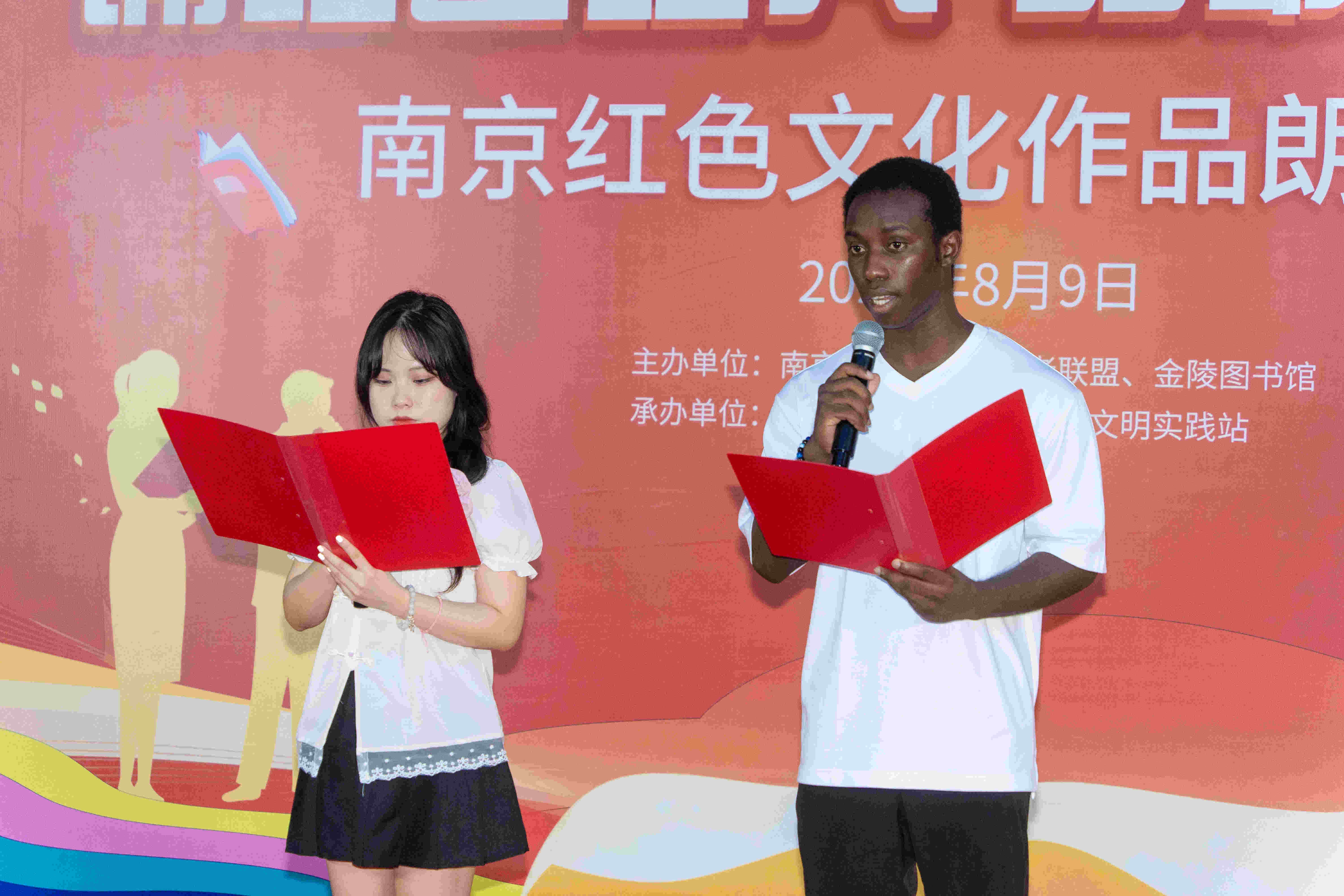 朗诵的红色篇目包括杨开慧写给毛泽东的信、邓颖超的《海棠花祭》、邓中夏给狱中妻子的信等,每一篇作品都承载着革命先辈的深情厚谊与坚定信仰。通过金陵图书馆“朗读者”志愿者们的深情演绎,这些红色经典不仅再现了革命时期的峥嵘岁月,更让现场观众感受到了革命先辈们对爱情、对事业、对国家的无限忠诚与热爱。值得一提的是,参与朗诵的文化志愿者,不仅有红色志愿宣讲团成员、金陵图书馆馆员及社会各界文化志愿者,更有来自南京工业大学材料科学与工程学院的多哥籍研究生丁以理、来自海外教育学院的越南籍本科生阮云凤的倾情加入,展现了红色文化的感召力与影响力。朗诵会由金陵图书馆活动服务部主任周樱格主持,南京市朗诵协会副秘书长刘荣进行了专业指导。