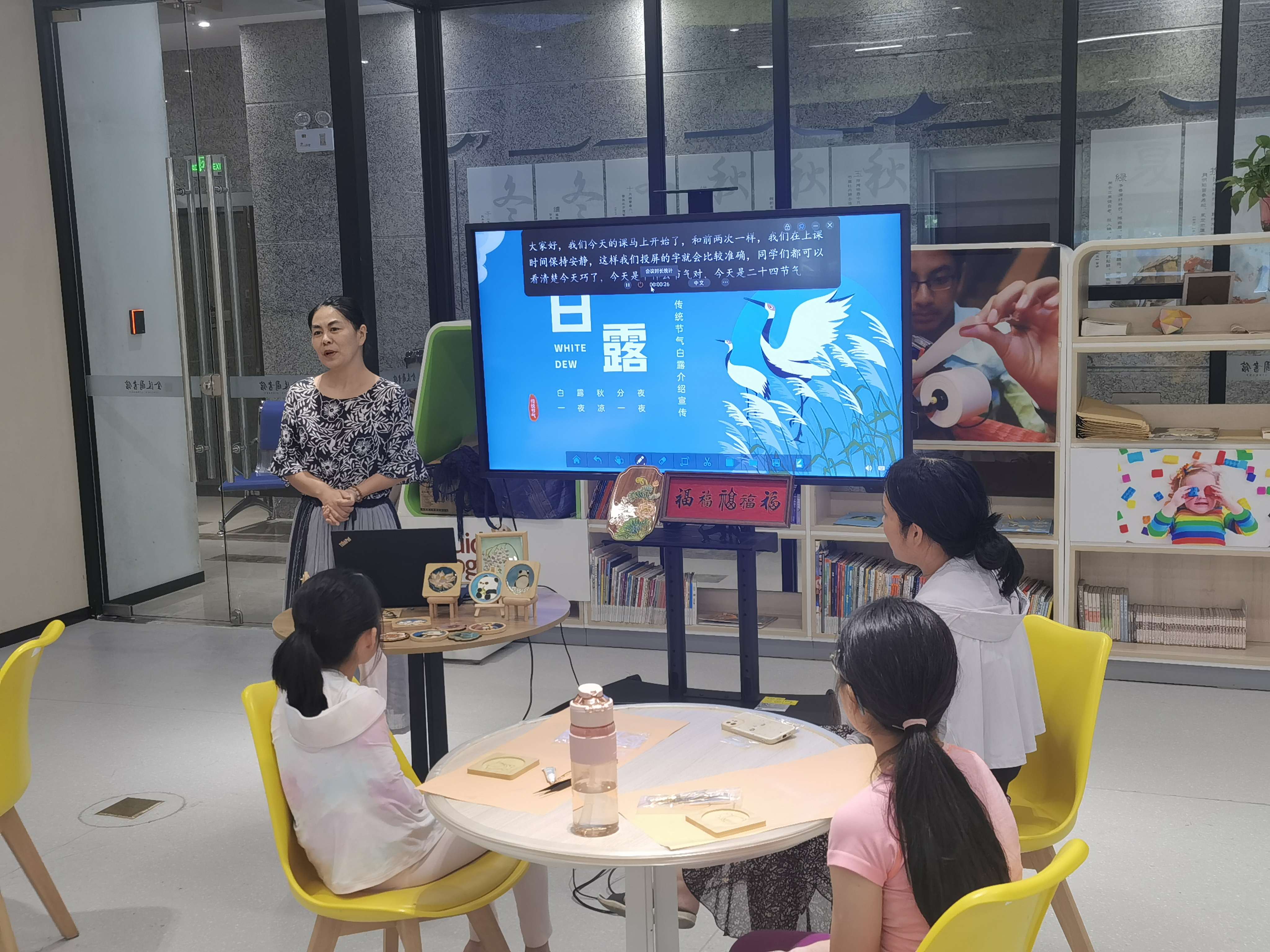 “蒹葭苍苍,白露为霜。所谓伊人,在水一方。溯洄从之,道阻且长。溯游从之,宛在水中央”。活动当天正值白露节气,授课老师首先朗诵了《诗经》中的《秦风·蒹葭》这首诗。接着老师从节日起源、气候特点、农事习俗、文学创作4个方面详细解读了白露节气。“二十四节气科学地揭示了天文气象变化的规律,它将天文、自然节律和民俗实现了巧妙的结合,衍生了大量与之相关的岁时节令文化,成为中华民族传统文化的重要组成部分。”老师娓娓道来,同学们听得津津有味。