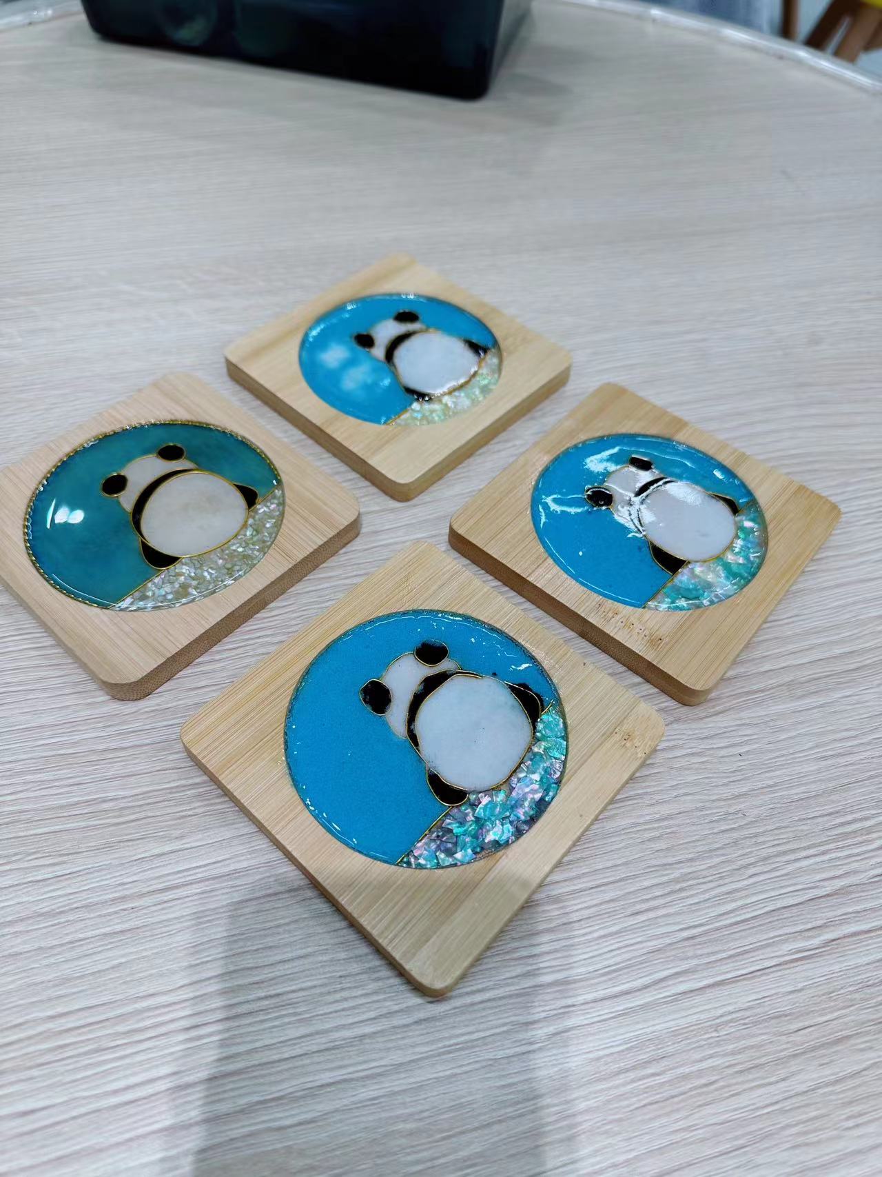 本次课程是把前面两期学的掐丝珐琅和螺钿工艺结合起来完成一个熊猫图案的杯垫。听障儿童与普通儿童齐坐一堂,在老师的指导与现场语音实时翻译下,实现了教学与交流无障碍。他们共同完成初步的掐丝手工,并不时地交流、学习一下同桌的制作技巧,形成熊猫的耳朵、身体、四肢等轮廓,再进行螺钿工艺的镶嵌制作,最后进行填色、沉淀、烘烤等步骤,整个过程持续了一个多个小时,在老师的巡场指导下不断完善手工作业,体验着工艺出自自己手中的成就感。