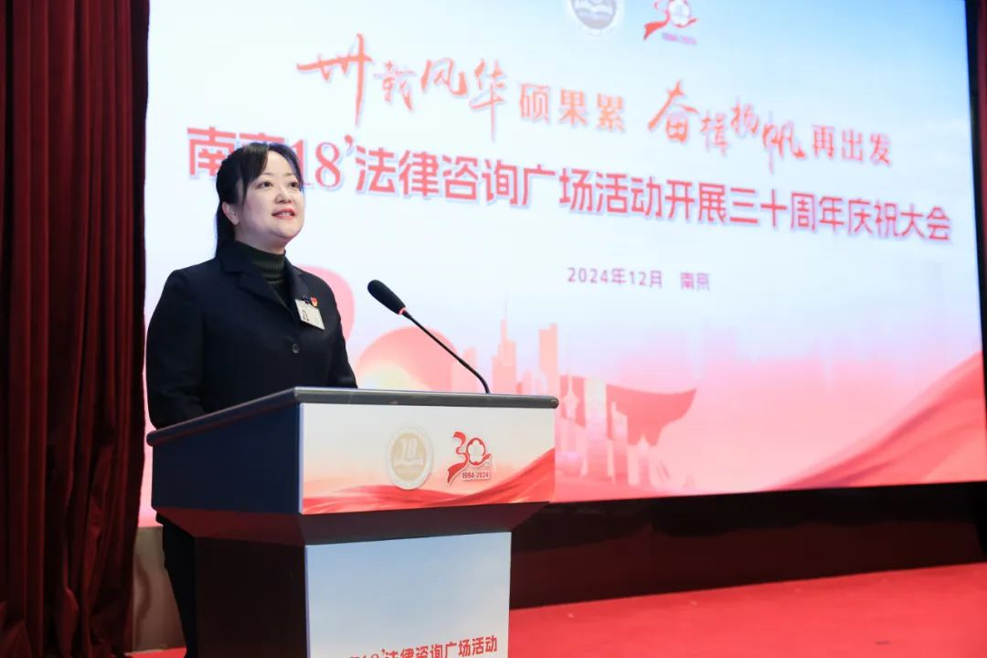 2024年12月18日,市司法局、市文旅局、市律协、金陵图书馆和市法律援助基金会共同举办了“卅载风华硕果累,奋楫扬帆再出发”南京18'法律咨询广场活动开展三十周年庆祝大会。