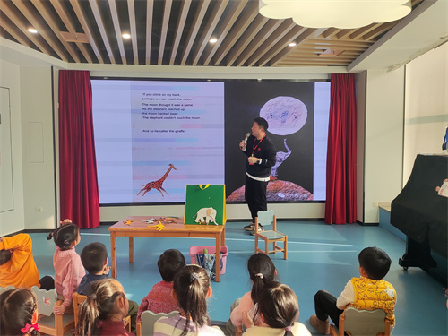 在绘本分享环节,老师以生动的讲述和形象的肢体语言,将故事娓娓道来,孩子们听得津津有味,仿佛置身于那个奇妙的夜晚,与小动物们一同品尝月亮的味道。活动尾声,大家兴奋地走上舞台,与老师合影留念,共同记录下这温馨而美好的时刻。
