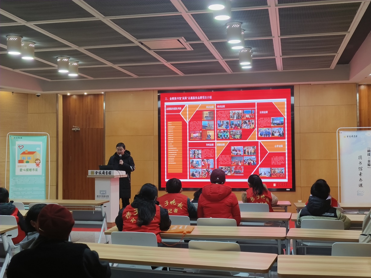 在志愿引导员培训环节,金陵图书馆活动服务部馆员张启扬向小读者们介绍了金图的志愿服务项目,并带领小读者们亲身体验如何为来馆读者提供志愿引导服务。
