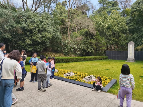 仁和老师首先带领孩子们来到辛亥革命雨花台之役阵亡将士人马合冢,并详细介绍了辛亥革命时期那一段风雨飘摇的历史。接着,在杨邦乂剖心处,仁和老师介绍了这位民族英雄的抗金义举以及铁心桥地名的由来。