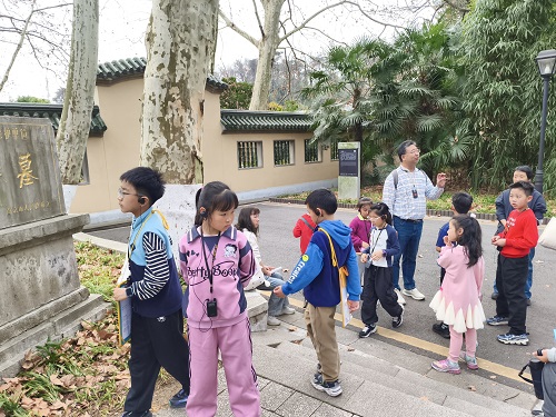 随后,仁和老师带领孩子们沿着梅岗、韩熙载墓等古迹来到了方孝孺墓前,向孩子们讲述了靖难之役的经过及明代名臣方孝孺的忠义事迹,并带领孩子们欣赏了方孝孺墓旁诸多碑刻上的精彩诗句。