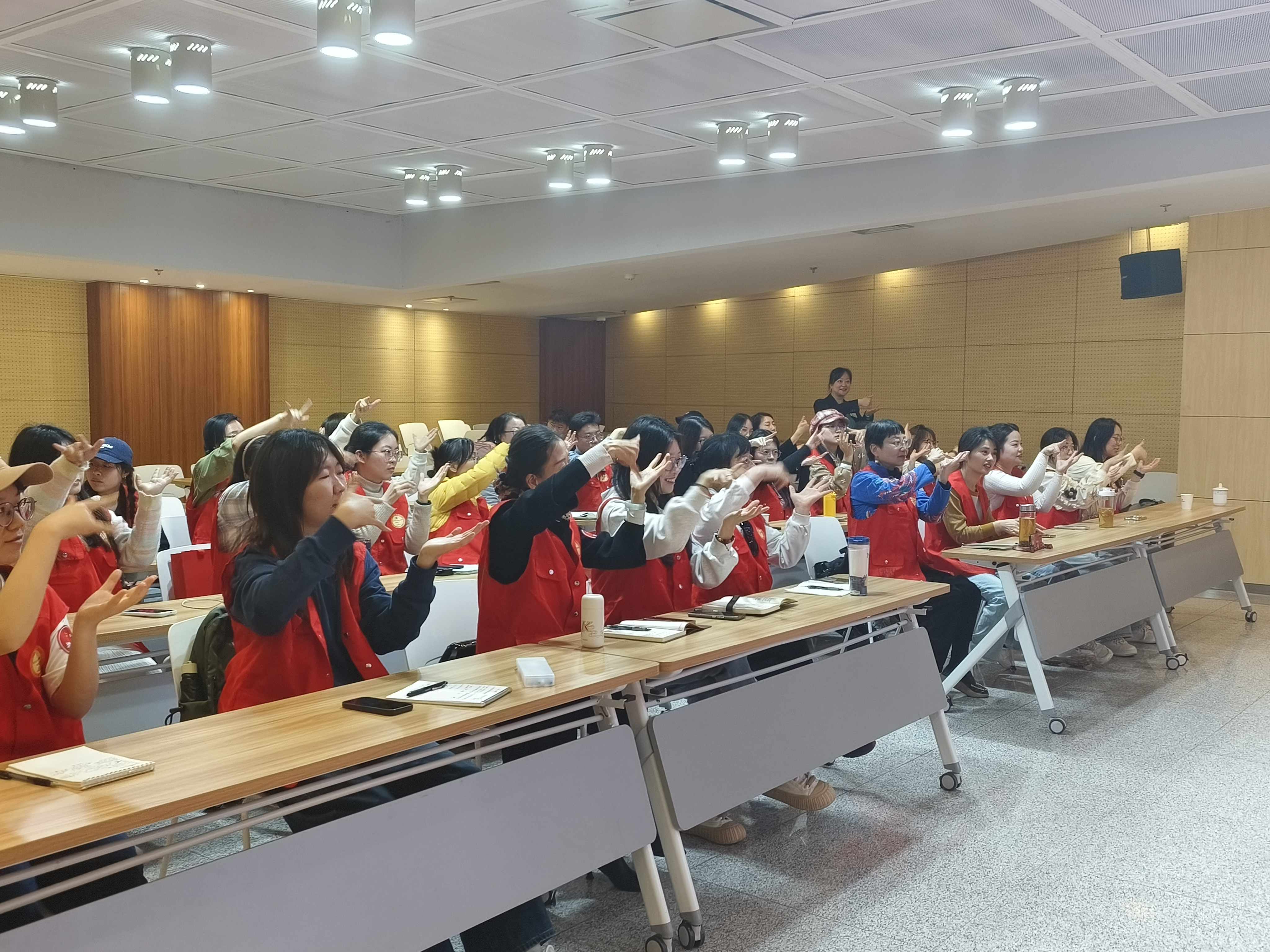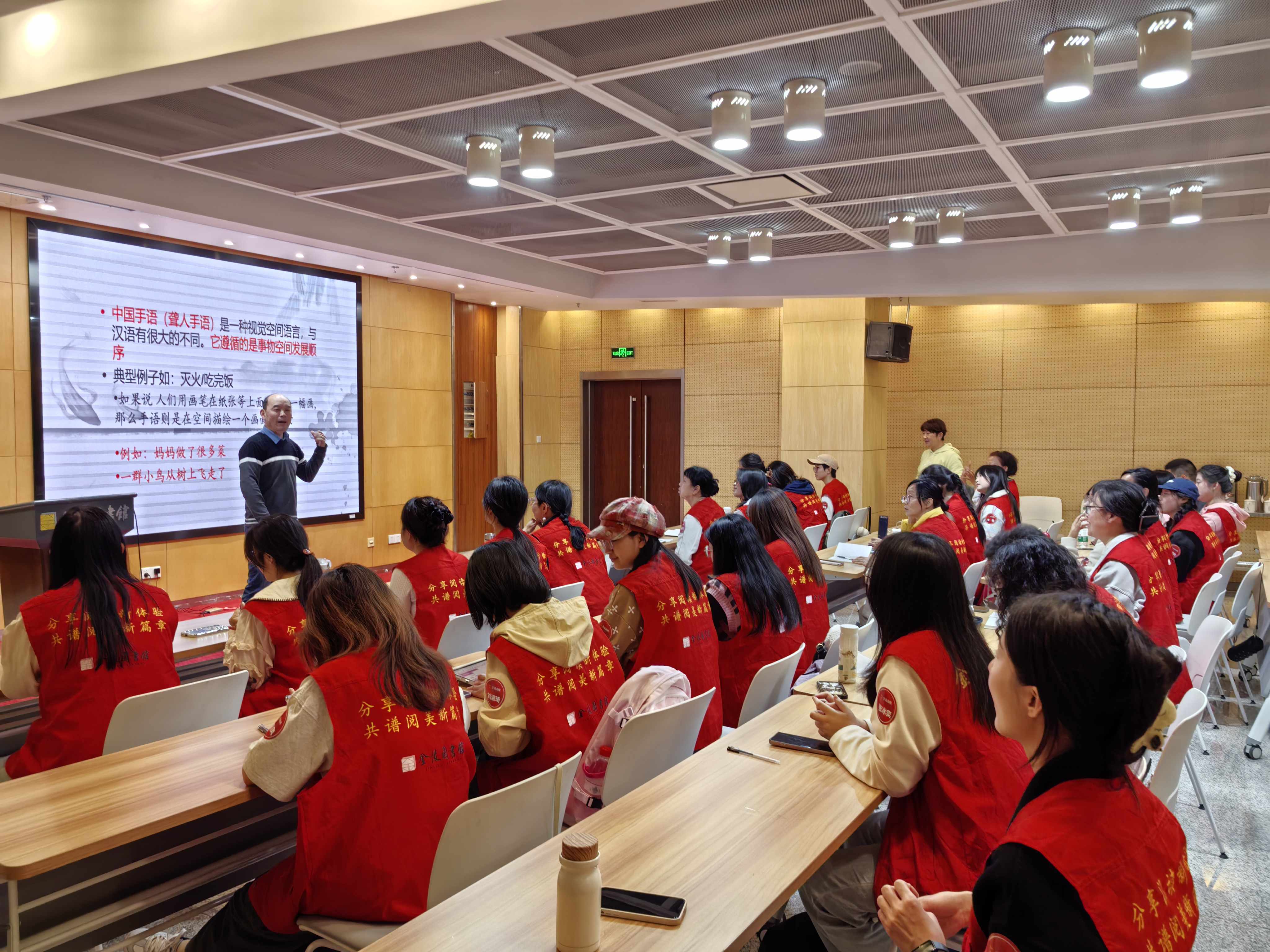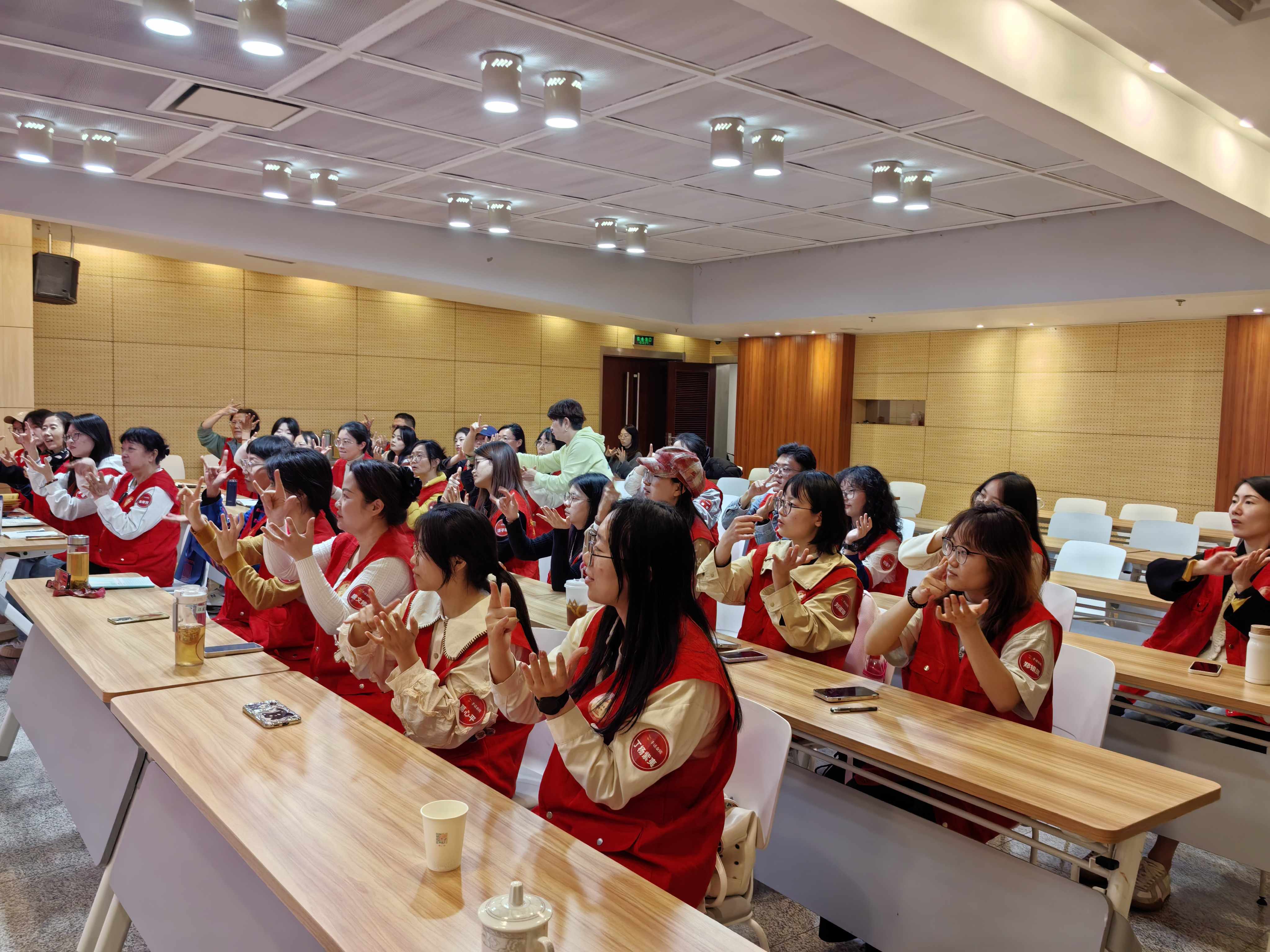 在公益助残、残健融合志愿行动中,手语宛如一把钥匙、一座桥梁,连接着无声与有声的世界。对于大多数听障读者而言,手语是他们最自然、最流畅、最有效的表达方式之一。对于志愿者而言,手语能够帮助他们走进残障人士的内心,让他们感受到恢弘正气、温暖友谊,重拾生活的信心与勇气。“手话金陵”系列活动旨在通过专业培训和阅读活动,培养一批能打手语的阅读推广志愿者,打破图书馆服务与听障读者之间的交流壁垒,推动公共图书馆助残服务的转型升级,为构建更加包容、和谐的社会环境贡献力量。