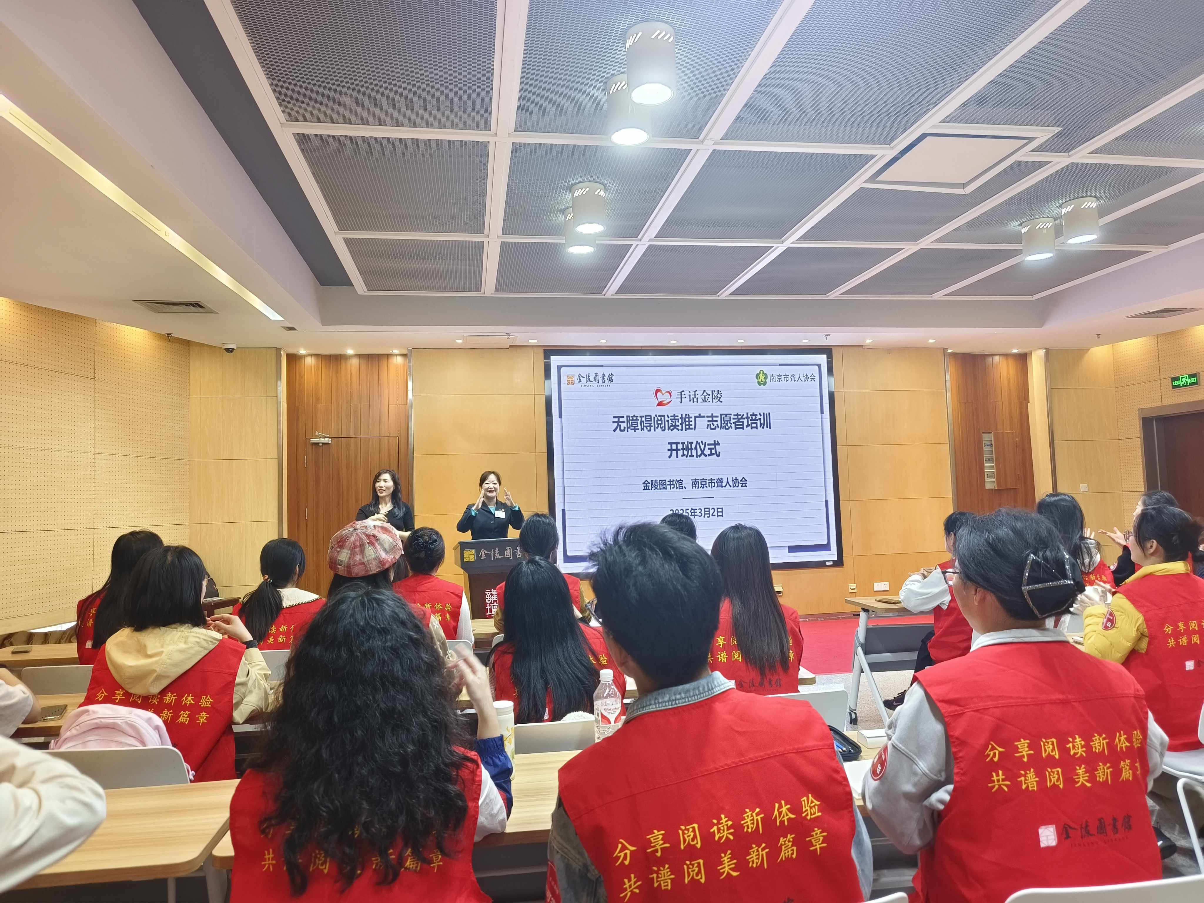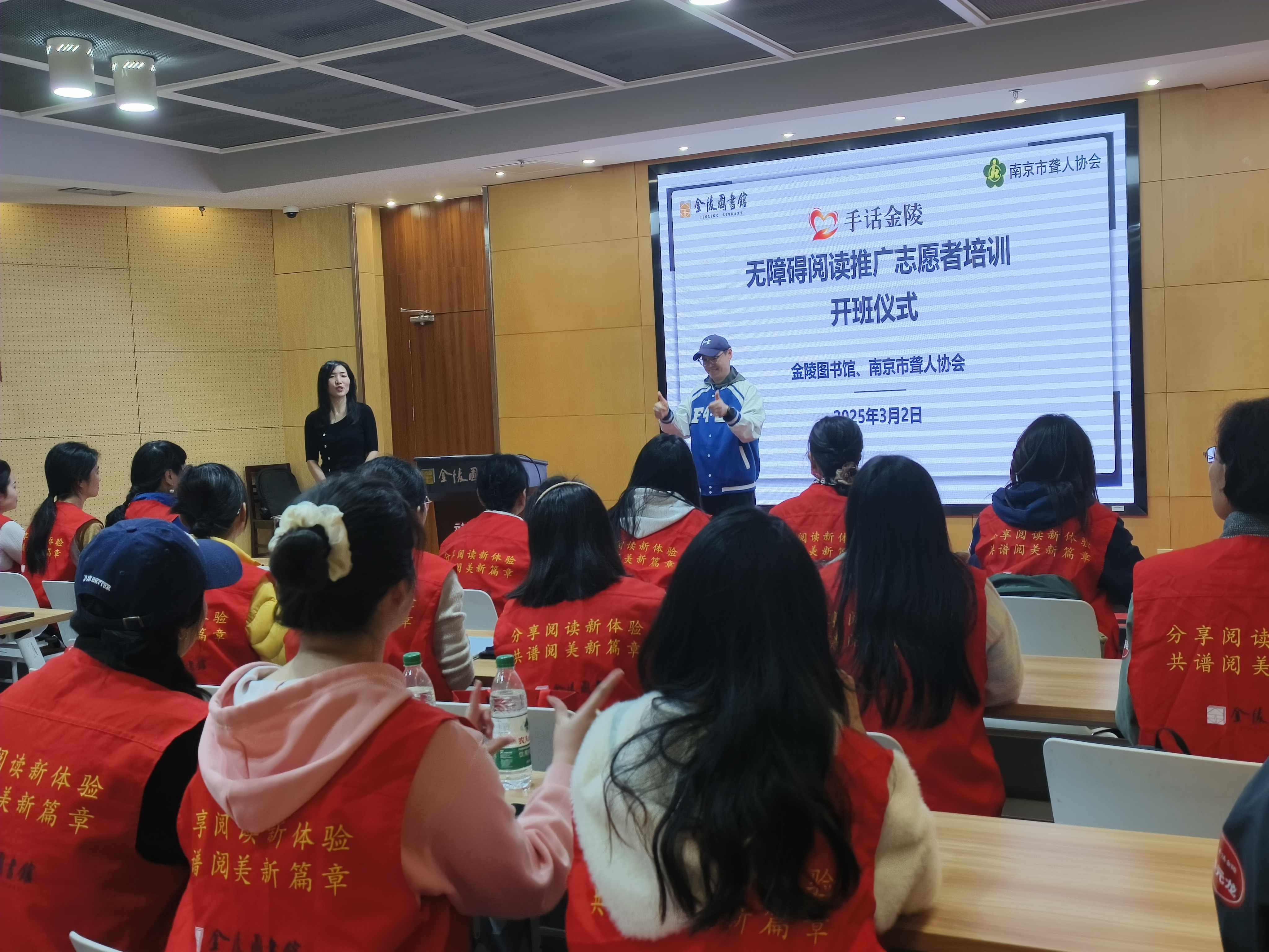 2025年3月3日是第二十六个全国爱耳日,今年的主题为“健康聆听,无碍沟通”。3月2日,由金陵图书馆和南京市聋人协会主办、南京市残疾人联合会支持的“手话金陵”无障碍阅读系列活动在金陵图书馆正式启动。30名志愿者参加了“手话金陵”无障碍阅读推广志愿者培训的开班仪式。