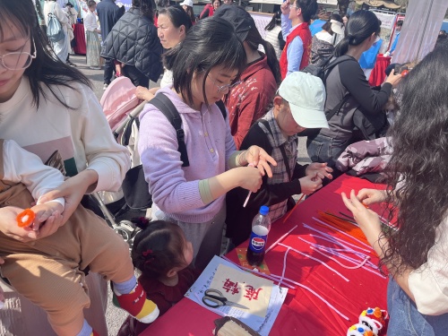 而在手工扭扭棒制作区,各色扭扭棒在志愿者的指导下被巧妙地折叠、扭转,不一会儿就变成了一朵朵精致的小花或一只只可爱的小动物,现场充满了孩子们的欢声笑语,过往市民纷纷被吸引,驻足观看并参与其中。