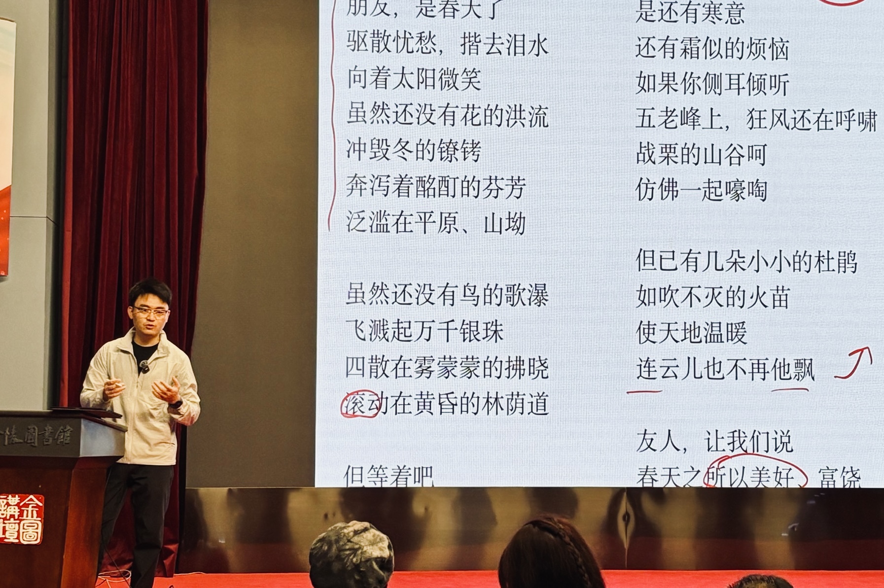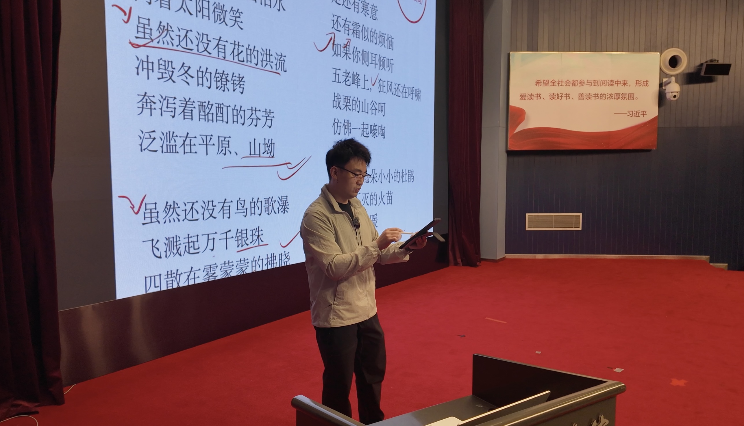 2025年3月11日,金陵图书馆举办了“阅美留声·金图朗诵美育课堂”公益朗诵课。本次课程邀请南京广电集团十佳主持人、南京市朗诵协会副秘书长、南京市全民阅读促进会理事刘荣主讲,吸引了朗诵爱好者和文学爱好者们参加,现场气氛热烈,学习氛围浓厚。