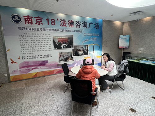 “南京18’法律咨询广场”起始于1994年12月18日,由金陵图书馆与南京市司法局、市律师协会共同创建,是一项常年面向所有市民的公益法律咨询服务。每月18日上午,南京市律师协会从全市各律师事务所选派优秀律师前来义务驻点,解答市民提出的法律问题。