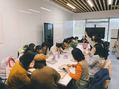 本次活动的制作主题是串珠戒指,众多参与者都是被老师的设计所吸引,施华洛世奇珍珠和彩钻的叠加,细节满满的组合让这枚戒指闪耀又不失优雅,在指间折射出璀璨的光泽。虽然参与者对于这枚戒指的喜爱溢于言表,但想要通过自己的制作拥有它,这个过程的难度也不低。但好在授课老师教学经验丰富,课前便录制了视频教程,参与者们先听老师分步骤详细讲解,然后动手制作,遇到小问题可以参考视频反复观看,理解上的难点则可以请老师现场示范,在老师的带领下,参与者们渐渐进入了串珠的美妙世界。随着活动的进行,参与者们也交流中互相帮助,分享自己在制作过程中领悟的小技巧,现场充满欢声笑语,洋溢着温馨和谐的氛围。