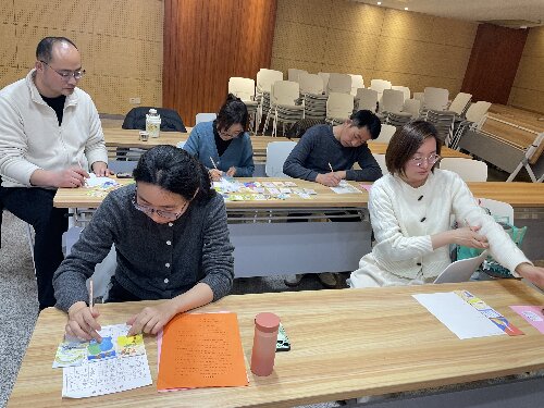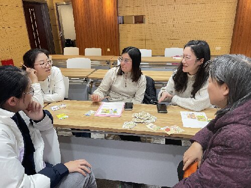 在“依仁游艺”环节,邀请到格格老师为大家带来了“火山爸妈变形记”OH卡体验工作坊。格格老师是青少年OH卡成长教练、SEL正面管教认证讲师、上海初高中OH卡青少年心理团辅/工作坊主教练,擅用OH卡工具读懂孩子背后的需求。活动中,格格老师用OH卡,带领家长们探索自己的情绪,看见引发情绪的事件。通过讨论,三个小组的家长们从陌生人变成了聊到停不下来伙伴,也在最后找到了自己的情绪急救包。