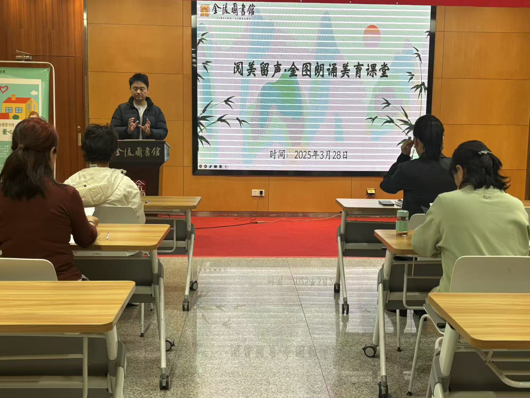 2025年3月28日下午,“阅美留声·金图朗诵美育课堂”公益朗诵课在金陵图书馆如期举行。本次课程邀请南京广电集团十佳主持人、南京市朗诵协会副秘书长、南京市全民阅读促进会理事刘荣主讲。
