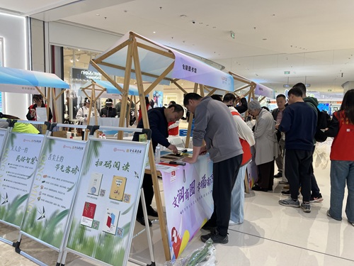 “益书来”以旧换新专区在当天迎来了络绎不绝的换书人潮,多数是家离金陵图书馆较远的读者,趁着假期带着书来到商场。这些旧书在工作人员核定可换后,将转化为“书币”进入换书者的“益书来”账户,后续可用于南京市民图书交换中心的新书兑换。同样排起长队的还有金陵图书馆文创展台,以金陵十二钗形象设计的古风线装本、金陵图书馆特色银杏书签等文创产品引发年轻人兑换热潮。文化符号化作可触摸的生活美物,阅读的仪式感与日常的烟火气在此完美相融。陈列在“阅美家园”展区四周的《柳色新处见清明——一个节日的千年生长史》文化展结合节气特色,生动展现踏青、插柳等传统习俗,使得整个“阅美家园”展示空间都沉浸在清明润万物的节气意境中。