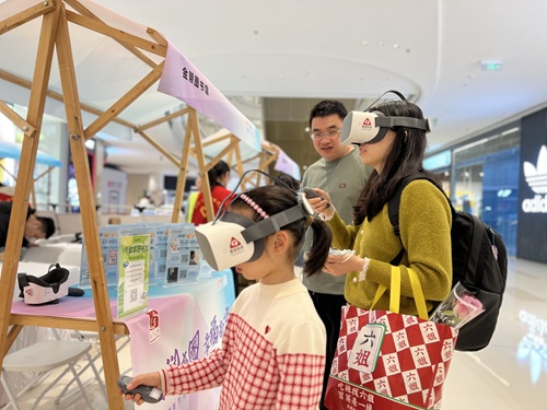 4月5日,由南京市文化和旅游局、商务局主办的“文润商圈·幸福南京”公共文化进商圈活动在建邺吾悦广场盛大启幕。顾客们在商场内即可欣赏到昆曲白局、茶艺表演,也能亲身参与文化服务、非遗工艺,在公共文化与商业综合体的融合中享受到别样的清明假期体验。作为本次活动的承办单位之一,金陵图书馆将传统阅读与智慧科技巧妙融合,在商场一楼创设“阅美家园”展区与来往顾客亲密互动,雕版印刷、VR数字图书馆、“益书来”以旧换新等服务受到众人青睐。